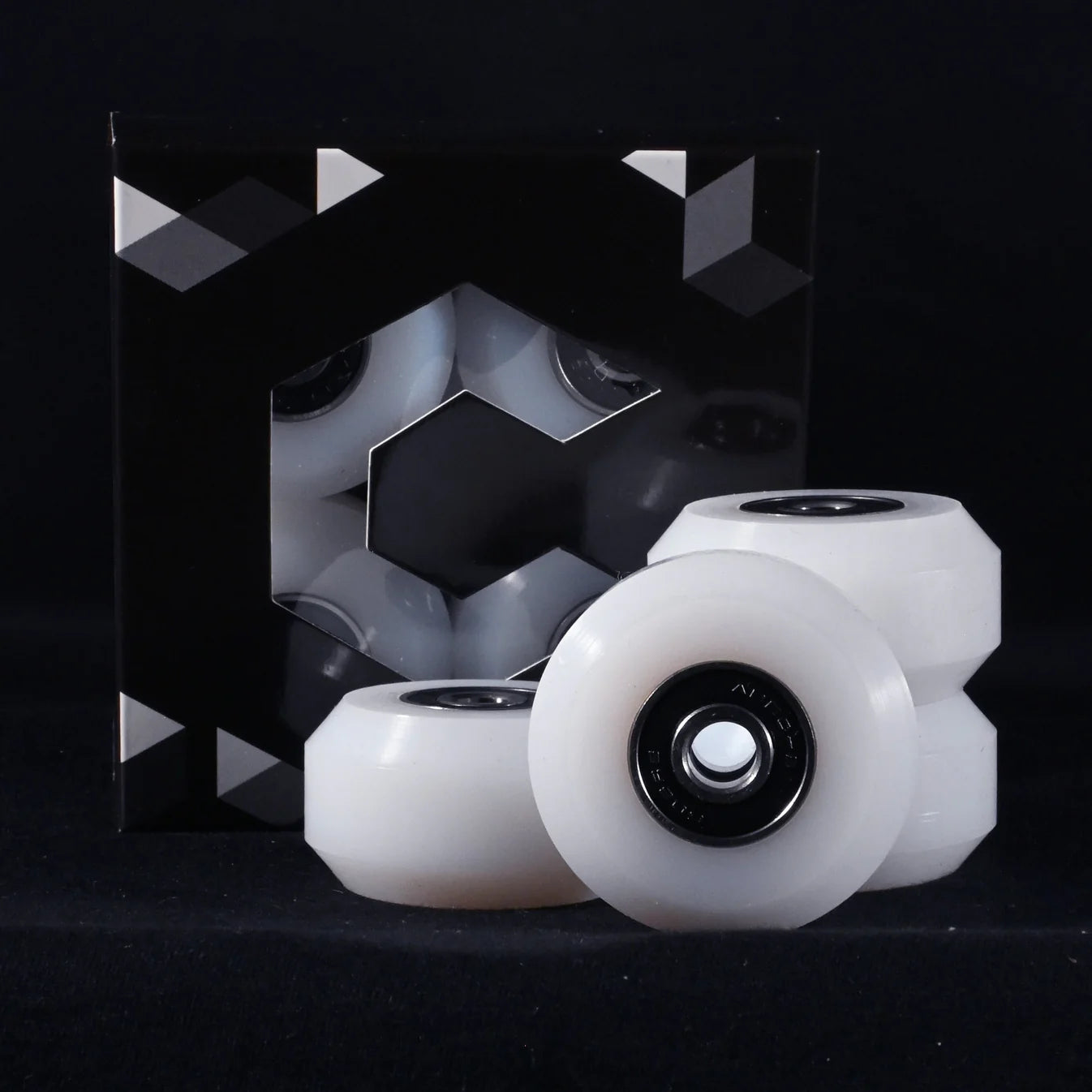 Chroma Antirocker Wheels are machined out of solid UHMW making them slide better than any traditional anti rocker wheel. The design is ideal for helping you lock on to groove tricks and stay there. Bearings are preinstalled to allow you to easily navigate any skating surface.